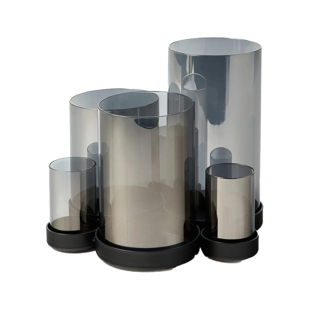Mustast klaasist küünlaümbris oma elegantse välimusega sobib hästi sünnipäeva või firmaürituse õhtusöögi lauale. Küünlaümbrise alusraam on tehtud alumiiniumist ning selle peal on silindrikujulised tumendatud klaasid.